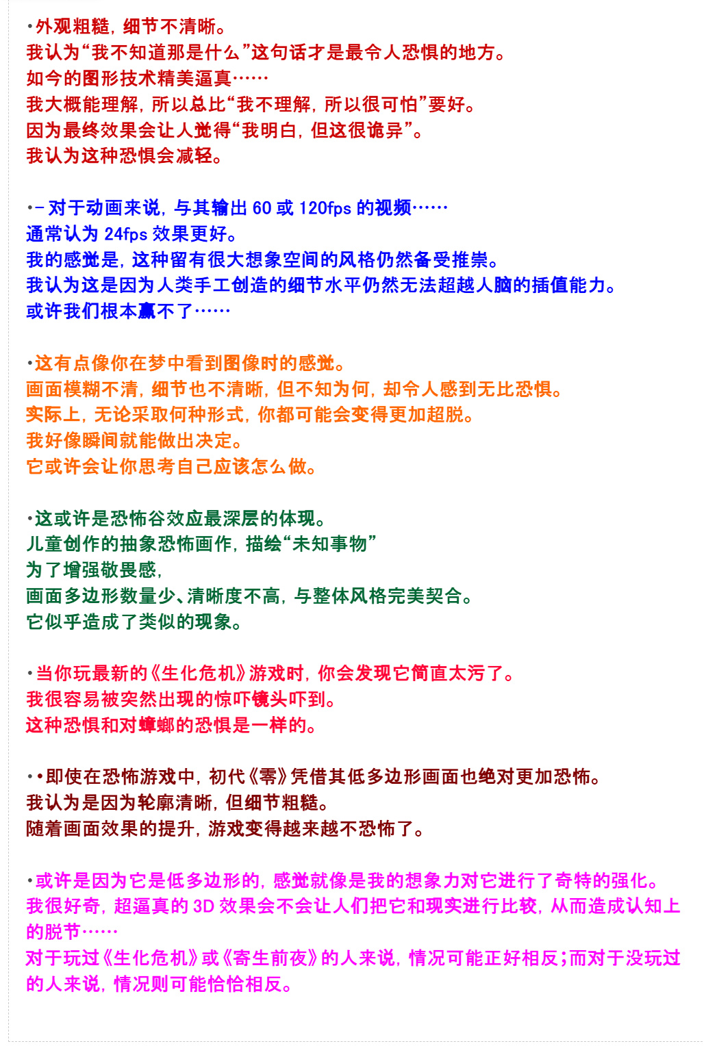 据了解,核心观点集中在“由于机能限制带来的恐怖感”。当年的《寂静岭》因为机能不足不得不加厚雾气,《生化危机》则用固定视角营造死角压迫感。那些模糊的轮廓、抽风般的动作贴图,反而给玩家的脑补留下了巨大的恐惧空间。