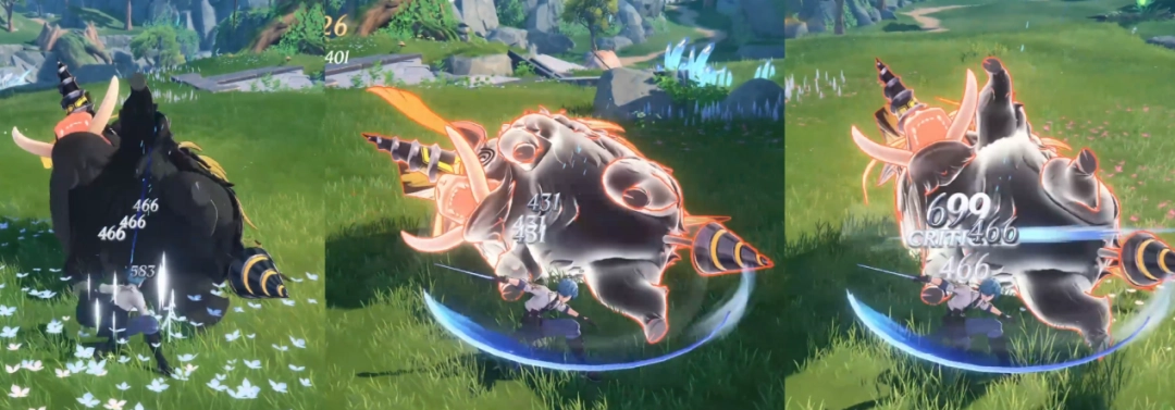 BOSS的機制和單人戰鬥時一樣,擁有“韌性條”。玩家可以通過把韌性條削減到一定程度後,配合“奇波”打出“合擊”,讓BOSS陷入無法行動,且所受傷害增加的倒地狀態。於是,BOSS戰的基本邏輯就基本成型了,戰鬥基本可以分爲兩個部分的循環——快速削韌把BOSS打進倒地,然後利用倒地的輸出窗口猛灌技能,給予BOSS重創。至於最大化輸出的“攢豆”循環,則會根據角色的不同而發生變化,這裏就不展開細聊了。