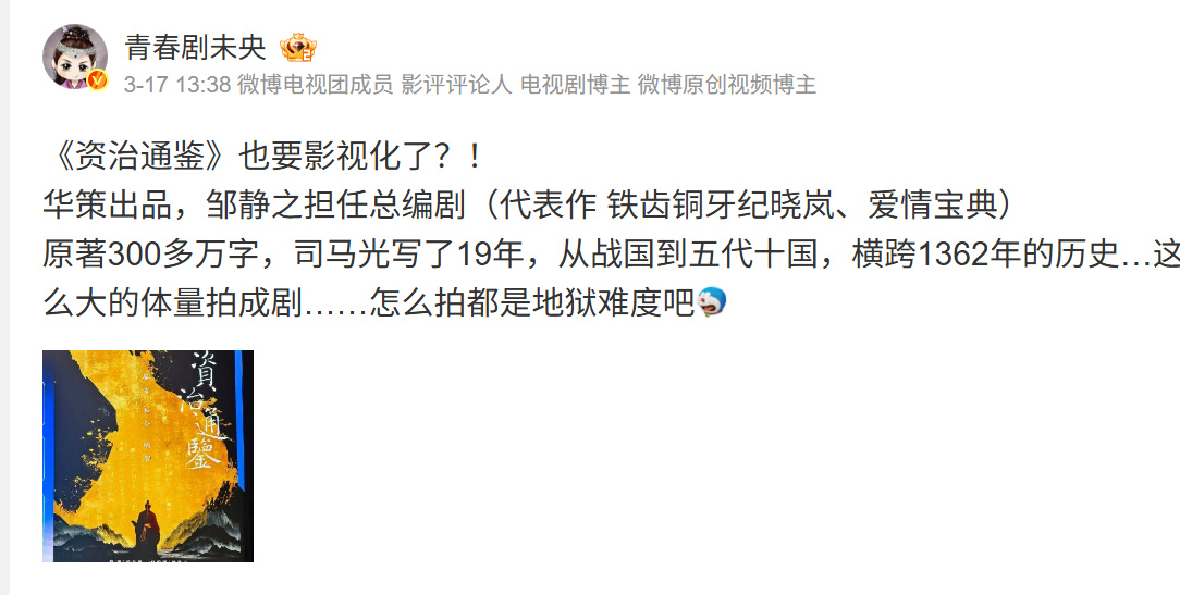 作为“北京大视听”重点项目,这部剧由中宣部文艺局、广电总局等多部门指导,华策集团倾力打造。谁懂,原著司马光的含金量
