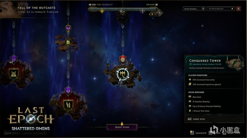 全新编织者天赋树节点——观测者之忆,可让大部分普通秘境以秘境链形式生成,不影响自然生成秘境链的概率,同时保留秘境链的便利特性(如延续传送门、奖励分配)。链末的秘境会掉落更强力的装备类秘境奖励,链中的秘境奖励可自动拾取,无需逐一确认,优化命运巨石体验。