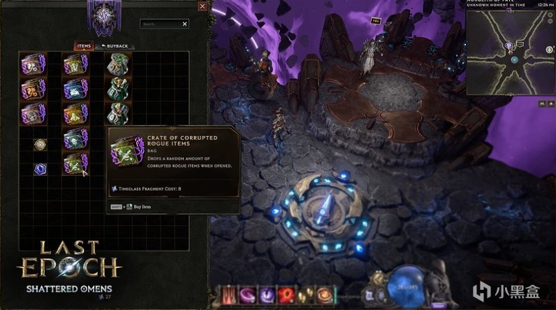可在命运巨石中与神谕者阿波菲斯兑换奖励,包括腐化符文、腐化装备箱、时空基石袋、远古骸骨袋,以及更多道具。击败高阶预兆之窗后,也可在时光沙漏核心处兑换特定类型的秘境链。