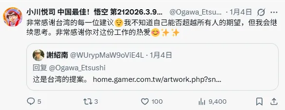 于是,就有许多网友私信给他提供灵感来源。比如小川悦司还转发表示自己会采取建议的台湾同胞网友给出的后续走向。