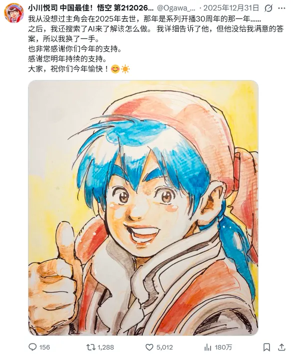 所以在去年跨年时,小川悦司发布了一条推文,表示自己也不知道怎么画了,甚至于求助AI,但给AI都整蒙了,没办法给出他满意的答复。