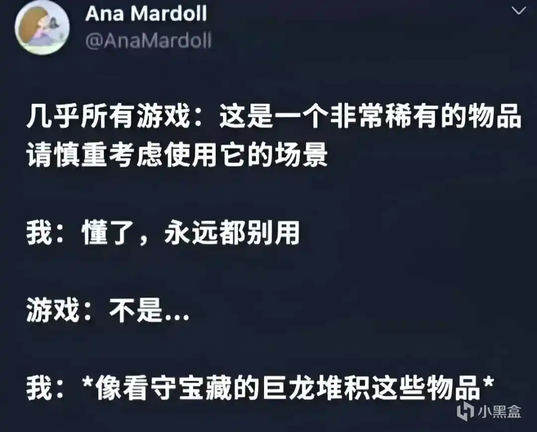 最經典的玩家“病症”。玩家想把消耗品留下來應對關鍵的戰鬥,卻往往在通關時發現從未使用過它們。