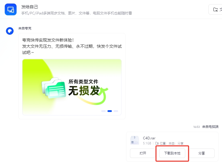 ③夸克回自动跳转到这个界面,再点击【下载到本地】