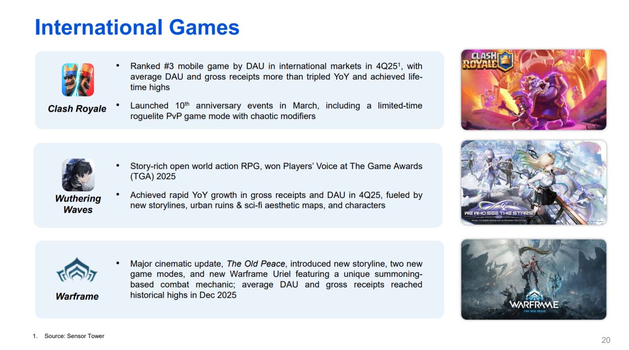《無畏契約》PC端收入同比增長超30%,平均日活躍用戶數在2025年第四季度創下歷史新高。