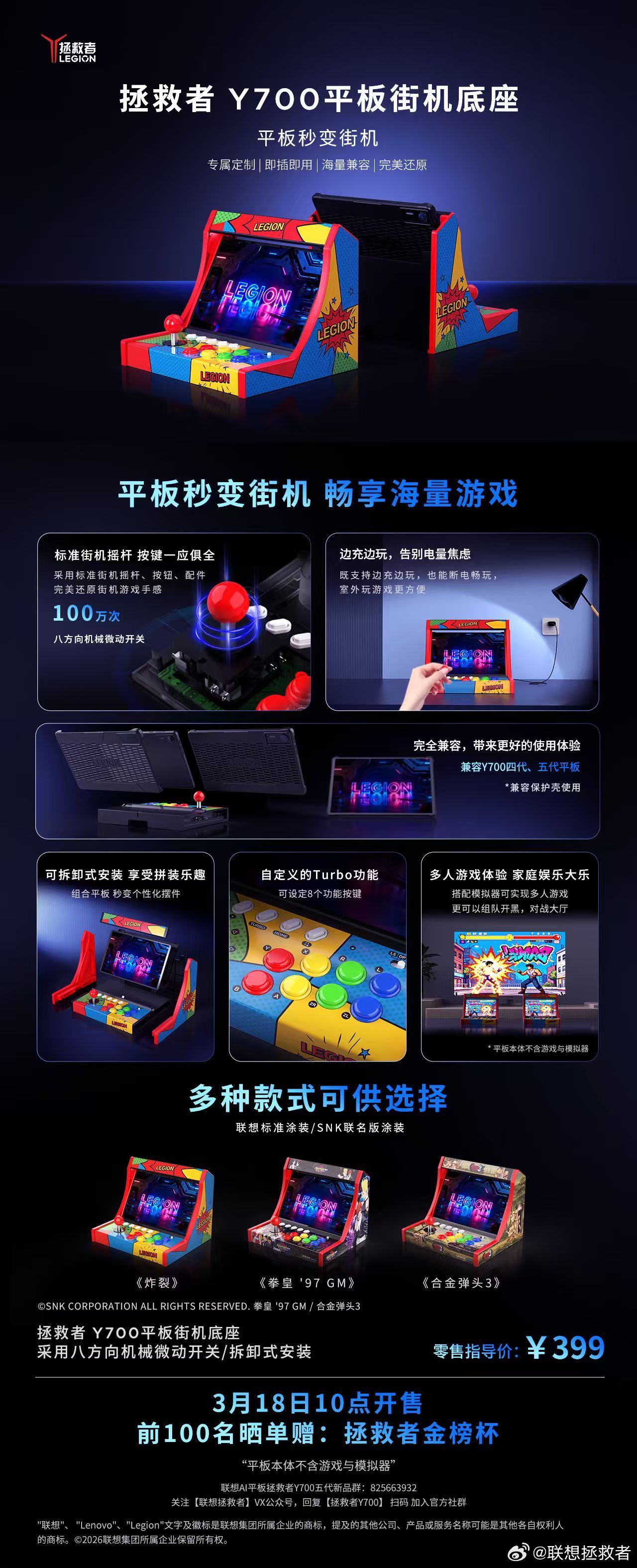 拯救者街機底座:399元;