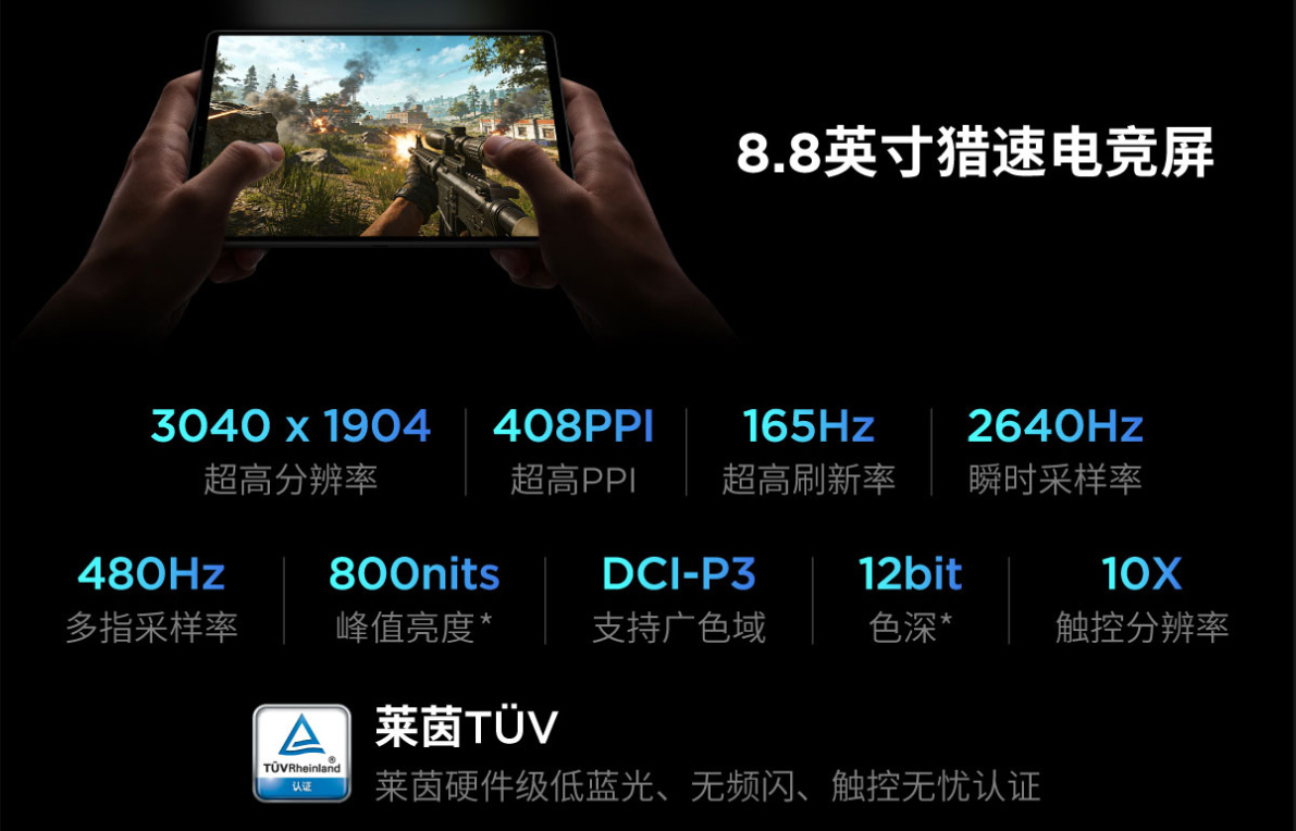 8.8英寸 3040×1904分辨率,165Hz刷新率,華星LCD屏幕;