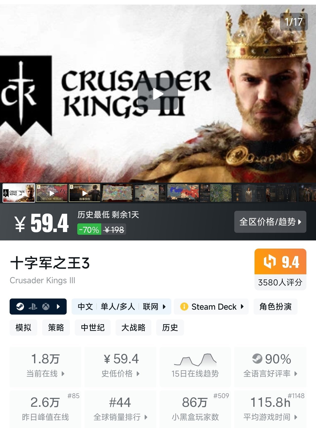 1、《十字军之王3》