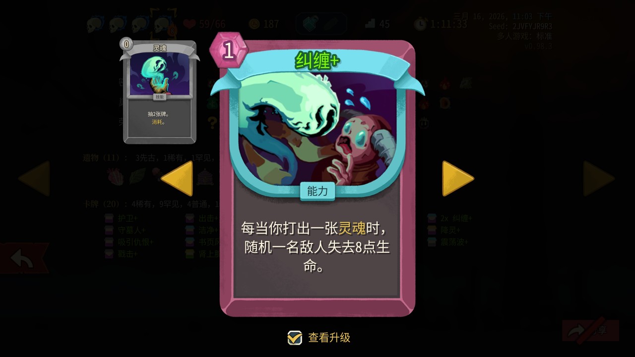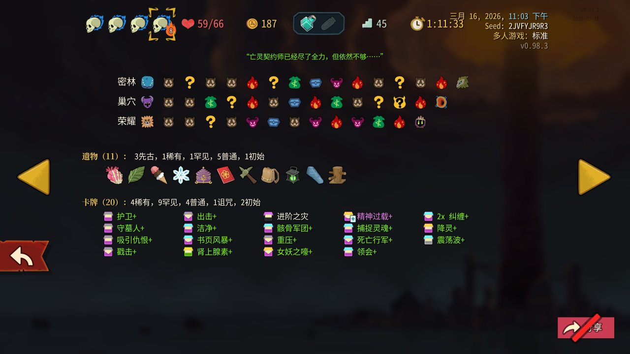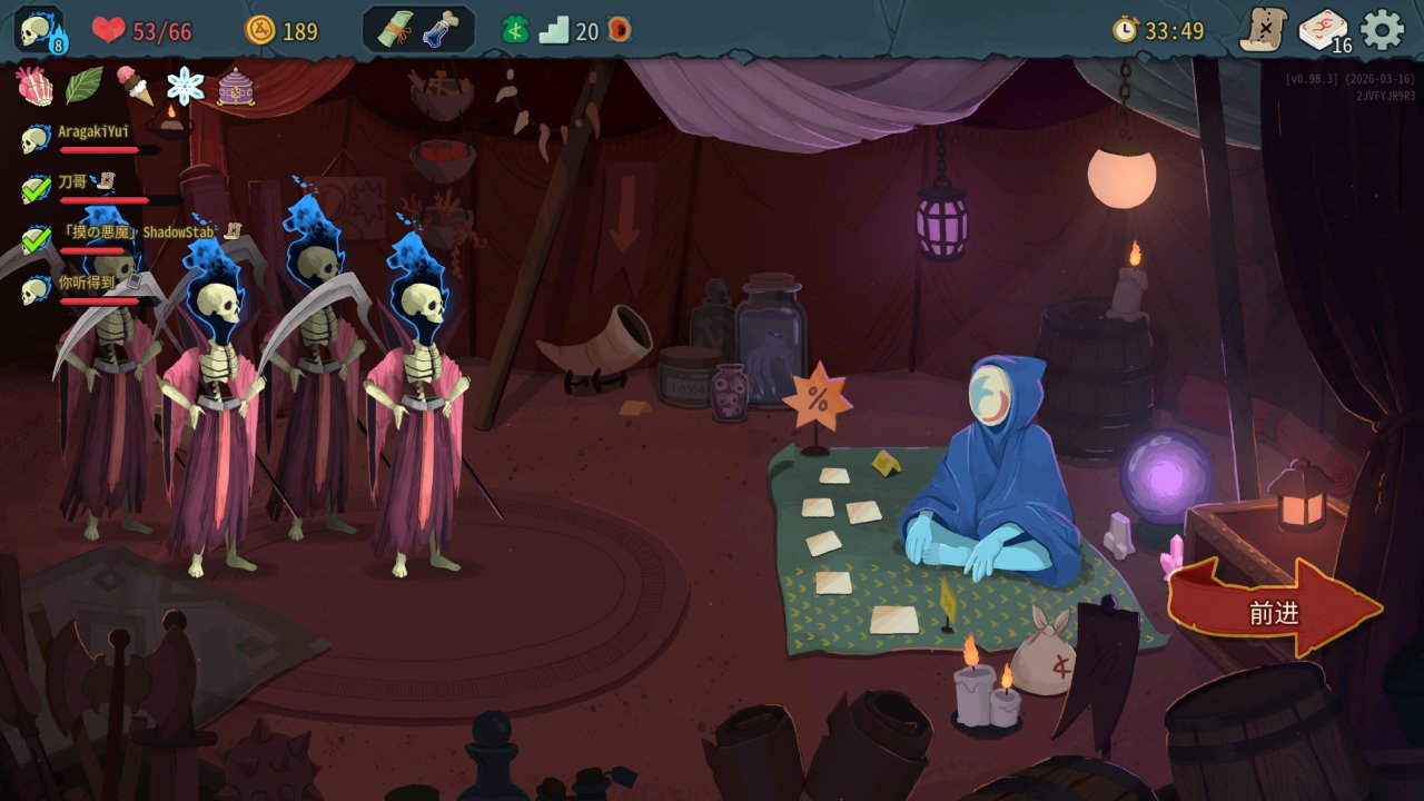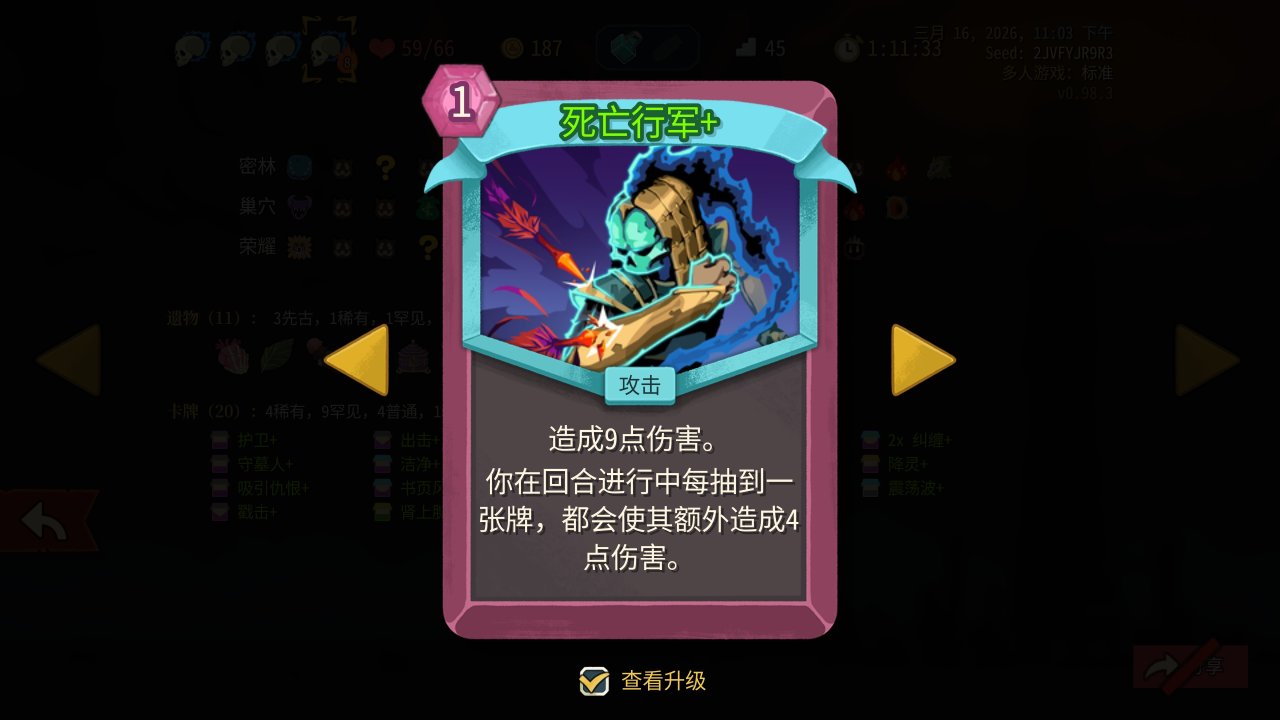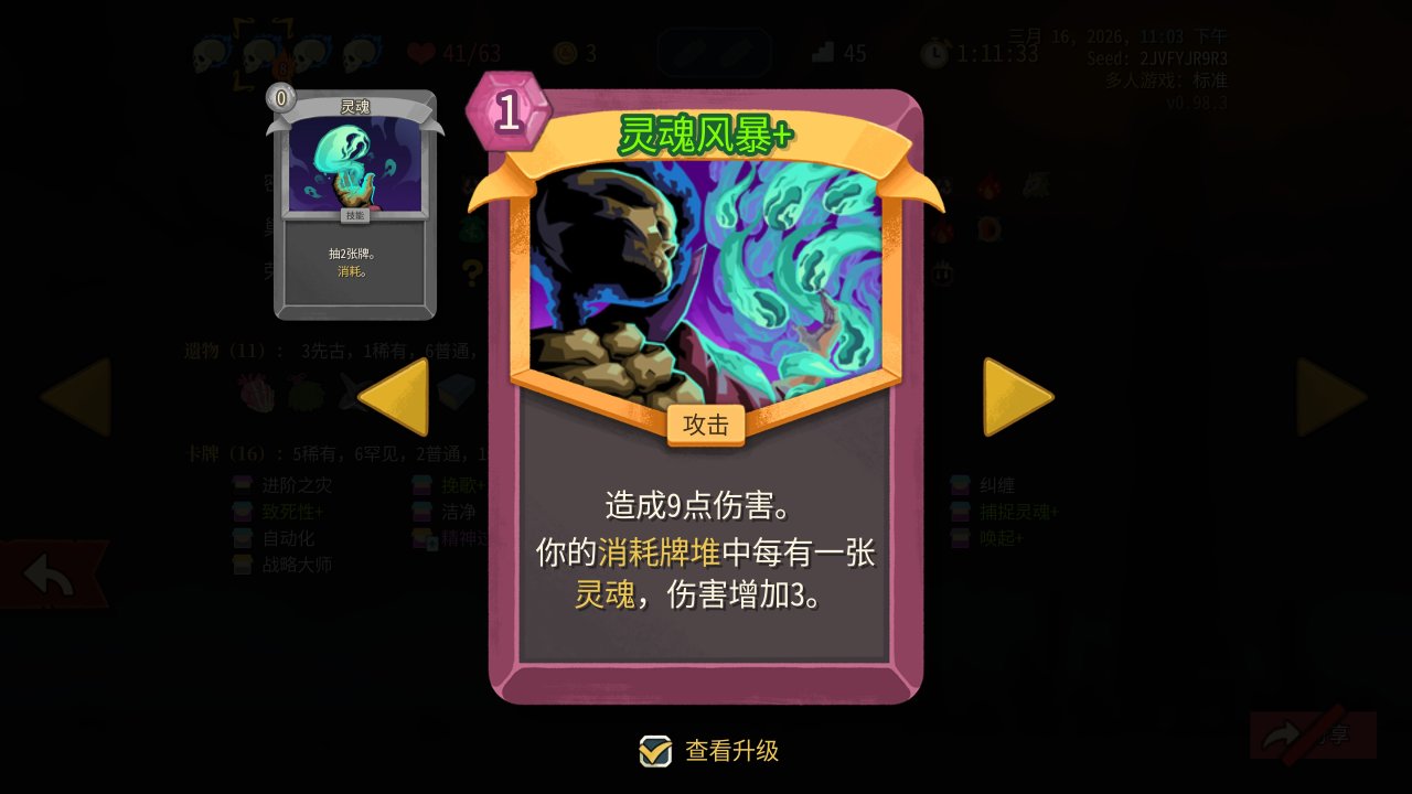 衆所周知,塔2的聯機BUFF可以共享,易傷、虛弱輕鬆全程覆蓋,不過在聯機數值上還是有點問題,等於是把隊友的啓動壓力也分攤給你了,所以整體抓牌要偏防殺——雖然單機也是防殺爲主,但聯機啓動更長,要是一層碰上四鰻、三小黑這些只能無奈慢慢磨了。