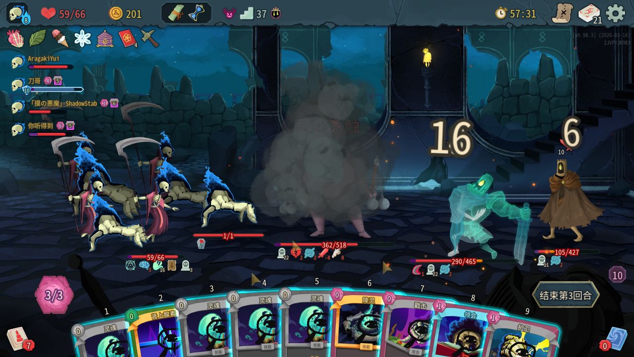 其實本質還是骨妹的糾纏抽牌流,但隊友抽卡也能觸發buff以後等於無形中把一份的收益變成四份,所以我猜是機制bug,不知道其他能力buff(例如血肉戲法)是不是同樣適用。