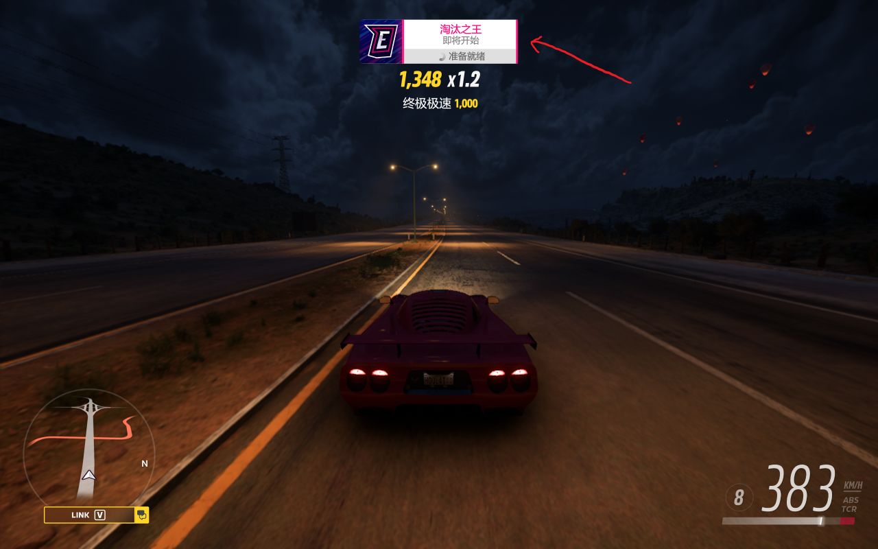 該挑戰非常考驗運氣,基本要 8 級或以上的車才能完成。這裏提供一個邪門法子:挑選一輛快車停到高速上,按出菜單進行匹配並適當提速,當頁面出現"即將開始"的提示時,猛踩油門加速,趕在選車界面前達成"終極極速",此時你已完成挑戰,後續可繼續遊玩或直接退出淘汰之王比賽。