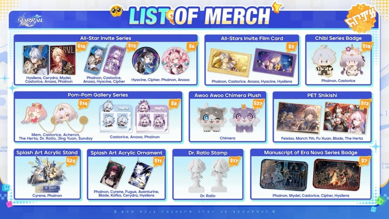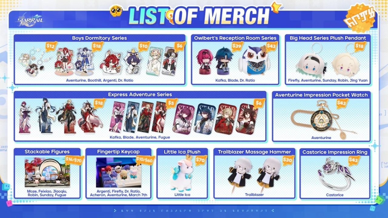 展臺將售賣“福郎先生的工作室”系列手辦、角色亞克力立牌等多款《崩壞:星穹鐵道》周邊產品。