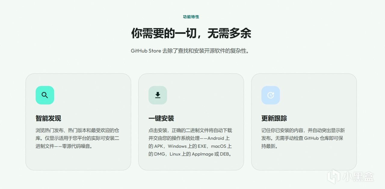 🧩 智能发现功能:首页推荐 Trending、Hot Release、Most Popular 项目,只展示含可安装包的仓库,无冗余信息;