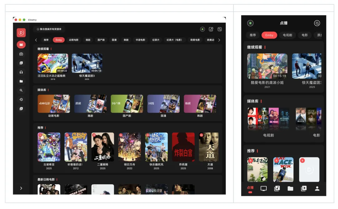 Cinetry最核心的亮點,就是強大的多源聚合與服務器管理能力,原生支持Jellyfin、Emby、IPTV、Webdav等數十種主流媒體服務器,電影、電視劇、音樂、圖片等各類媒體庫都能一鍵同步。