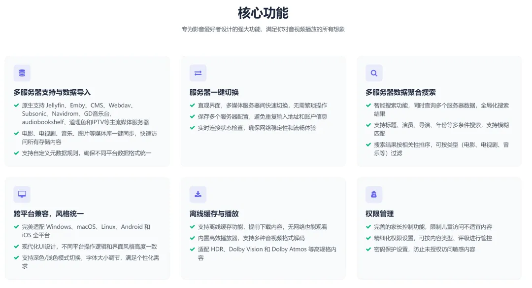 影音資源散落在不同服務器,切換查找繁瑣;多設備播放體驗不統一;擔心隱私泄露不敢隨意用播放器?