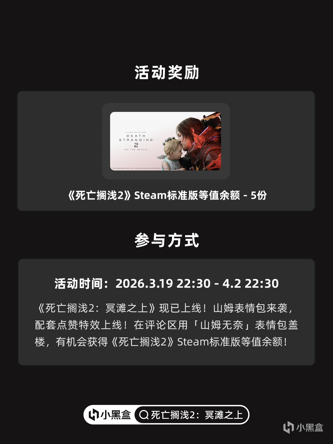 《死亡擱淺2:冥灘之上》現已上線!山姆表情包來襲,在評論區用「山姆無奈」表情包蓋樓,有機會獲得《死亡擱淺2》Steam標準版等值餘額!