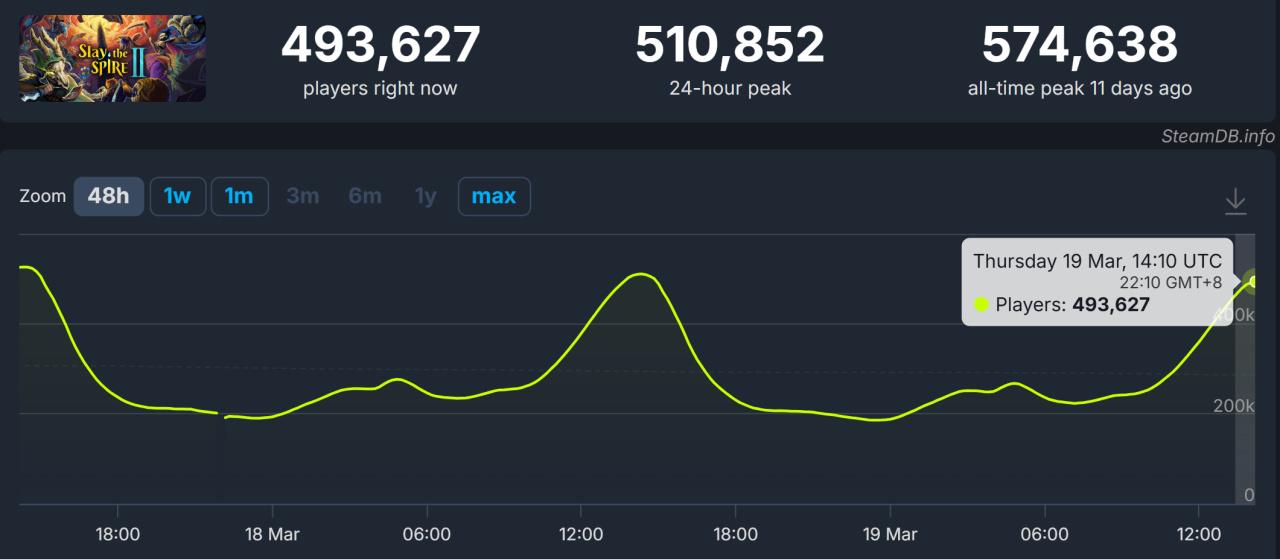 熱度漸衰?《殺戮尖塔2》峯值在線“跌破”50W,連續13天記錄終結