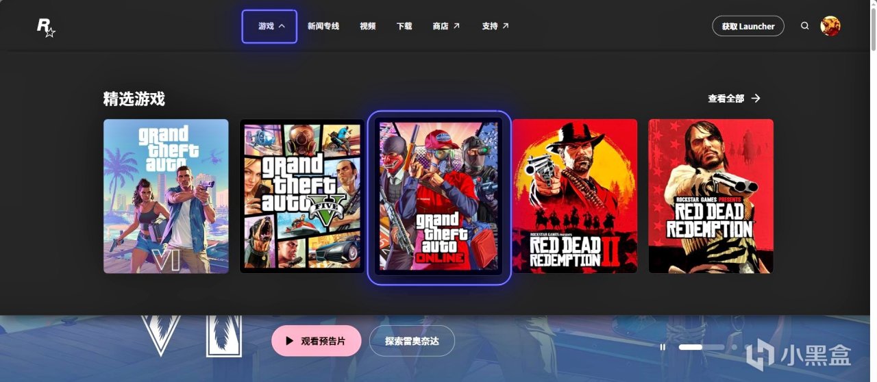 1.瀏覽器打開R星官網,選擇遊戲,選擇GTAOL。