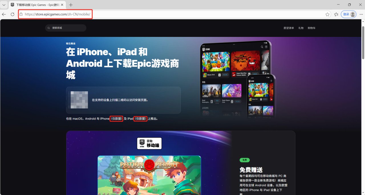 5.EPIC的APP下载链接:EPIC移动端游戏商城APP