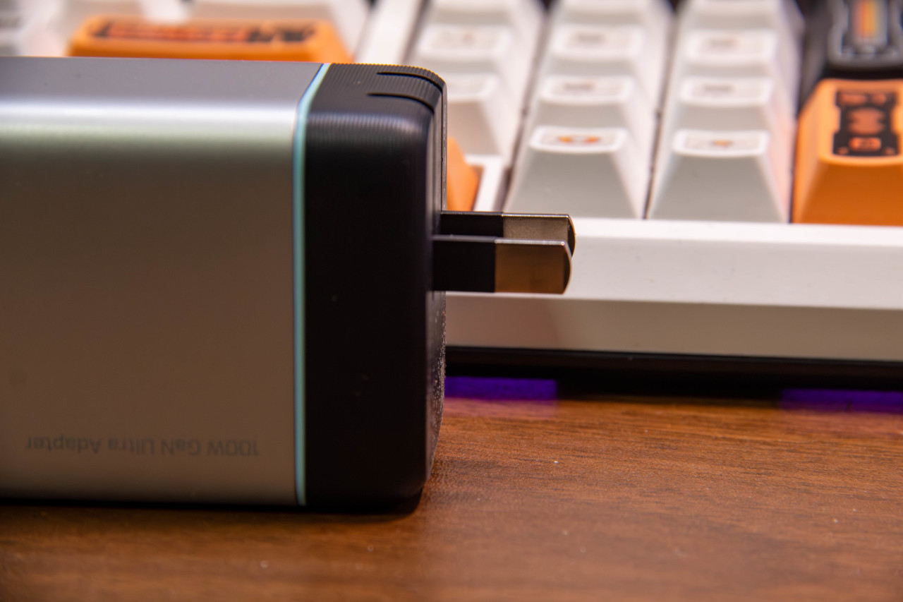 两个C口都做了蓝色标识,都支持单口100W输出,可以盲插。这点很爽,不用再记哪个口是大功率。
