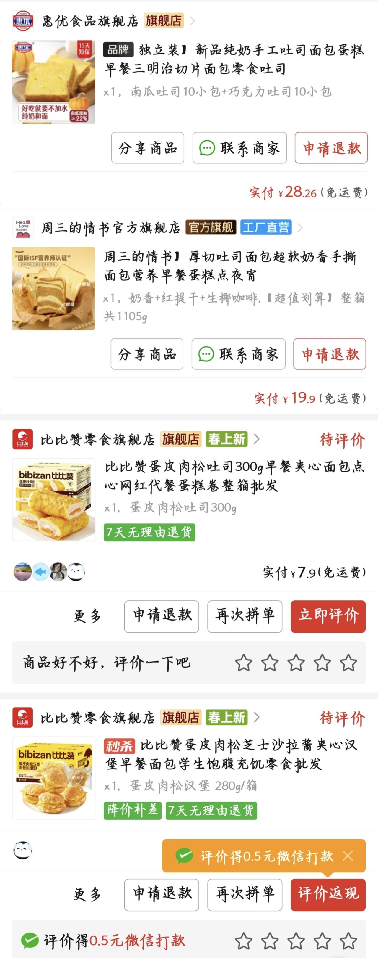 p5,這些麪包分量都偏小,連我這個小胃袋都只能說早八喫一個充飢。味道上,第一款麪包偏乾燥,喫的話建議來杯牛奶配合補一下水,給到頂級;第二款,很溼潤啊,很有奶香味,無論是配牛奶還是水,甚至空口吃都不會很乾給到夯(週三的情書這一家的麪包我覺着品控都不錯);最後兩個比比讚的這倆麪包,蛋糕卷很溼潤,肉鬆麪包中規中矩,算不上難喫也不是很驚豔,就給到NPC