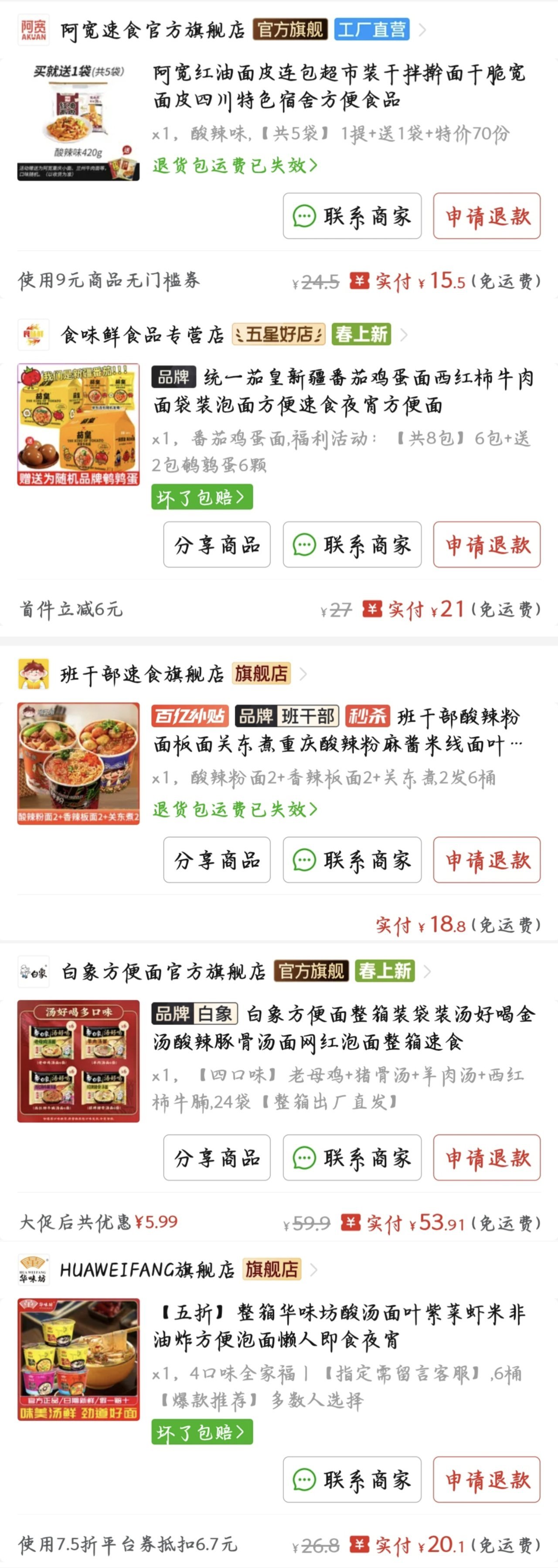 接着紅榜p3,阿寬和茄皇,夯,不必多說,缺點是有點貴。班幹部這幾款也不錯都在及格線以上,板面這一塊依舊幹不過今麥郎安徽板面總體給到頂級;接着是白象湯好喝一大箱,pdd稍微蹲一下疊個券約合兩塊錢一包,只是量有點不夠,可能不太呢喫飽,這裏給到頂級;最後來個面片,味道偏淡,比較適合喜歡清淡口味的盒友量也不是很大,這裏我給到人上人,不上不下,偶爾喫喫也不錯