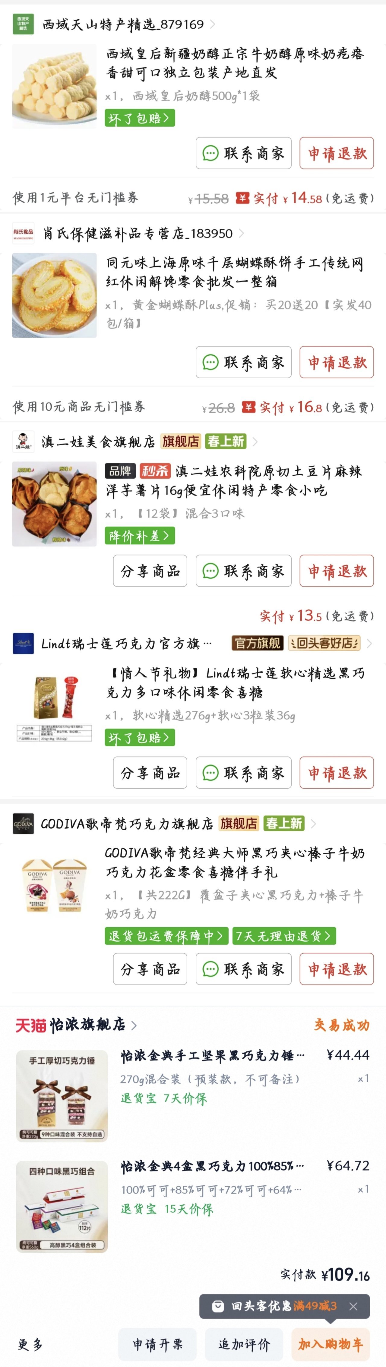 p6這些呢,先說那個蝴蝶酥,量大,每一小包大概在剛好一口悶的量,很乾,甜得有點膩,不是很推薦,給到拉;接着是奶醇,這個香啊,無論是嚼還是慢慢的在嘴裏化開,都好喫😋,這個我給到夯盒友喫完記得刷牙喔;接着是滇二娃薯片,一包量很少,解饞不夠,反而還更餓了味道偏淡,黑椒味有點奇怪,像是用雲貴這邊的幹辣椒碾碎調的(這種一般在貴州都是用來調蘸水的,好奇的可以試試),只能給到NPC;最後是幾種巧克力,瑞士蓮口感絲滑綿密,歌梵帝夾心果香濃郁,怡濃黑巧可可香不錯(百分百的很苦,我推薦喫72%,我喫着感覺可可香和甜度剛剛好)以上給到夯但是呢,怡濃巧克力錘(很奇怪的名字,叫錘),這個甜度稍微有點高,而且各種果乾夾心破壞了巧克力的風味,我個人不推薦,給到NPC
