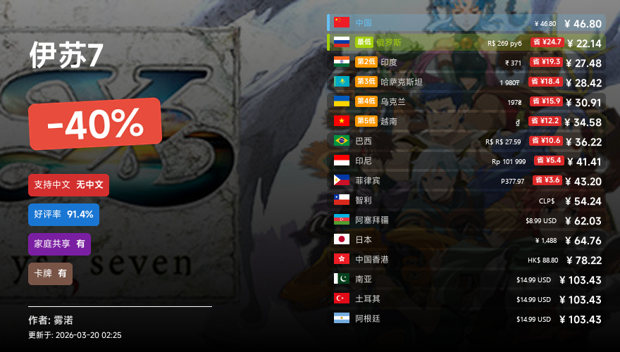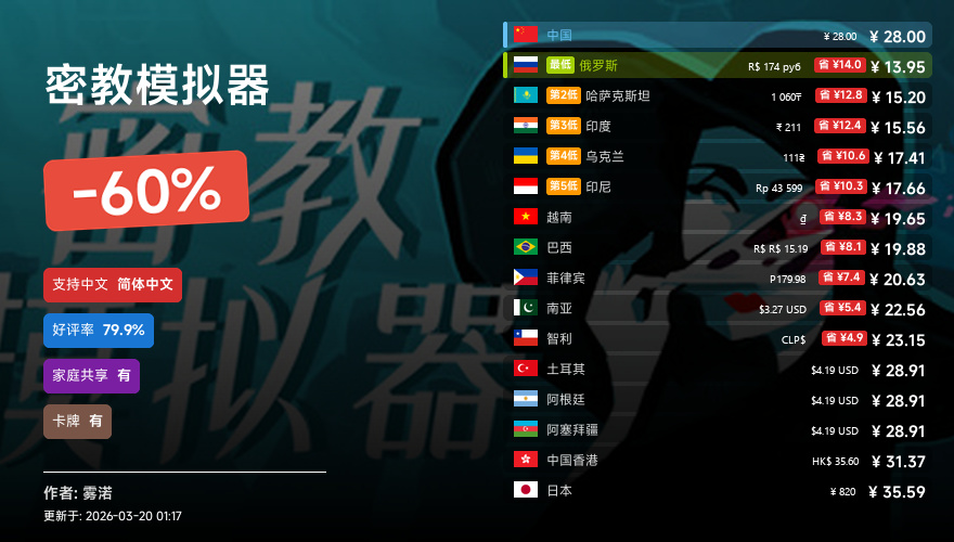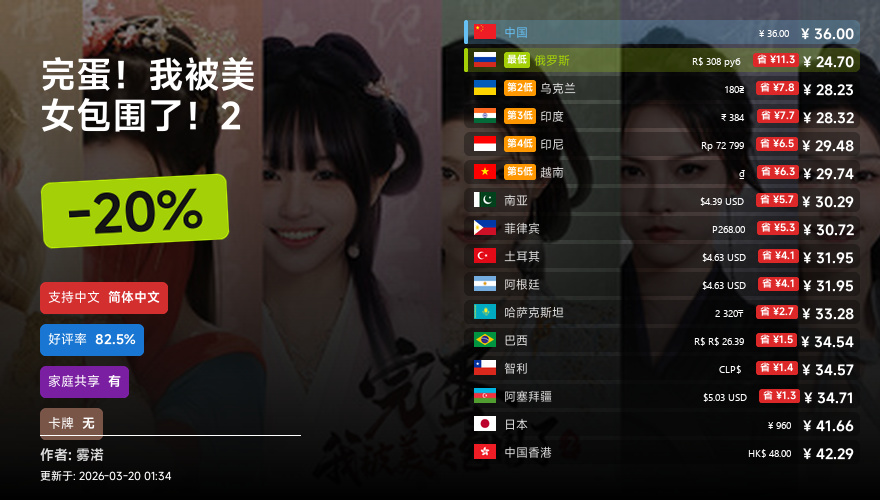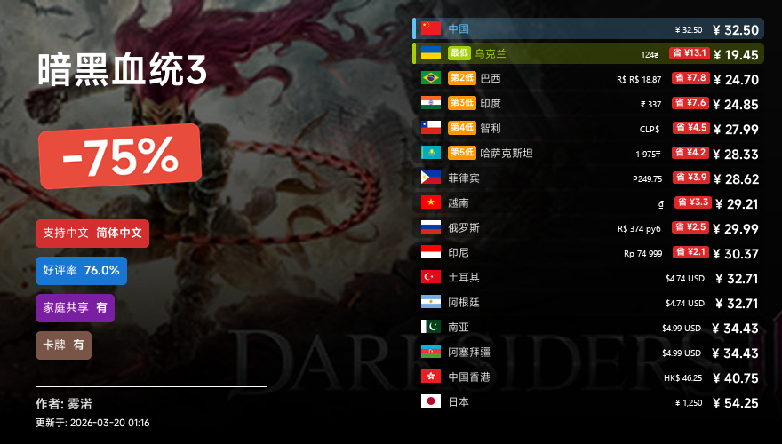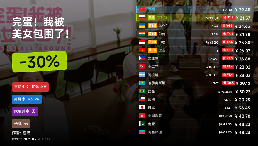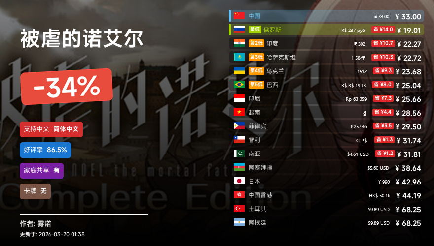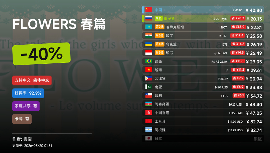 Steam 春促已開啓!我整理了春促遊戲清單,3A 大作、口碑獨立遊戲全覆蓋,普遍比國區便宜 50%-60%,最高比國區便宜 70%,一杯奶茶錢就能拿下國區百元級遊戲!