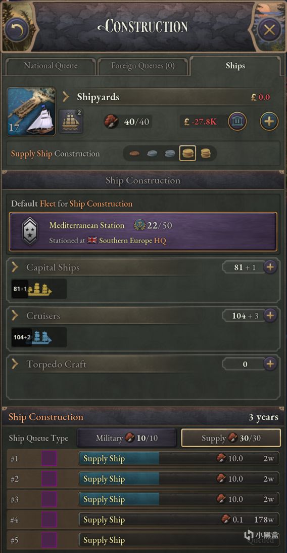 正在建造中的船艦數量不多,不過我們可以通過點擊加號改變現狀。