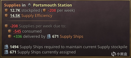 艦隊需要更多補給船才能維持補給等級;目前,艦隊補給正在隨時間減少。