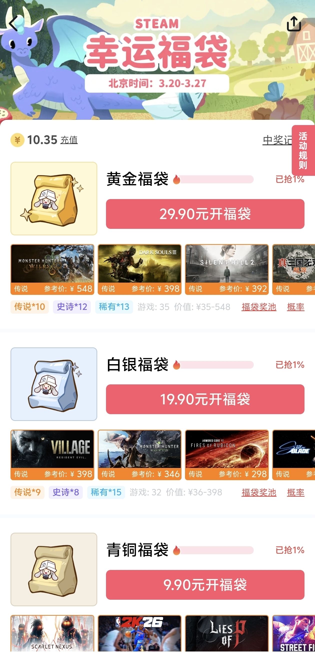 一念歐皇,一念非酋,幸運福袋,等你來戰!