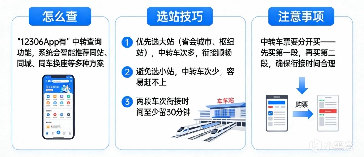 中转车票要分开买——先买第一段,再买第二段,确保衔接时间合理。