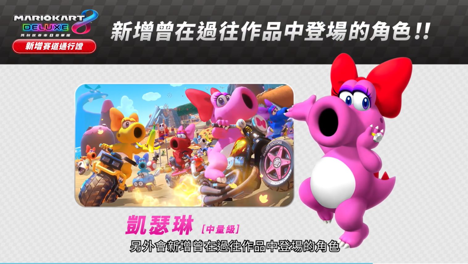 《馬里奧賽車8豪華版》賽道DLC第四彈將新增8條賽道和一個全新角色,作爲“新增賽道通行證”內容之一,後續的第五,第六彈還將支架16條賽道,將在2024年底前陸續發佈完畢。