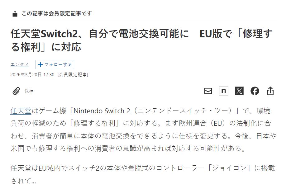日經新聞報道:任天堂將在歐洲推出Switch 2全新型號