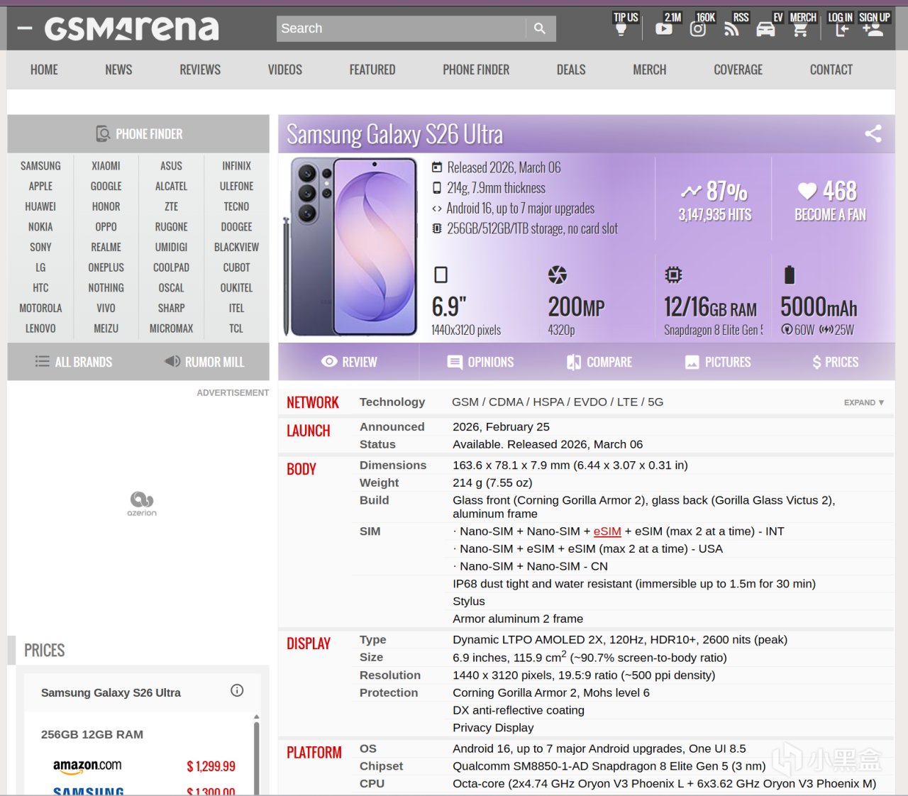 尽管业界对 2nm 良率仍有争论,但 S26 Ultra 搭载的这颗芯片确认采用了 台积电 N3P (增强型 3nm) 工艺。这是目前移动端能效比的巅峰。