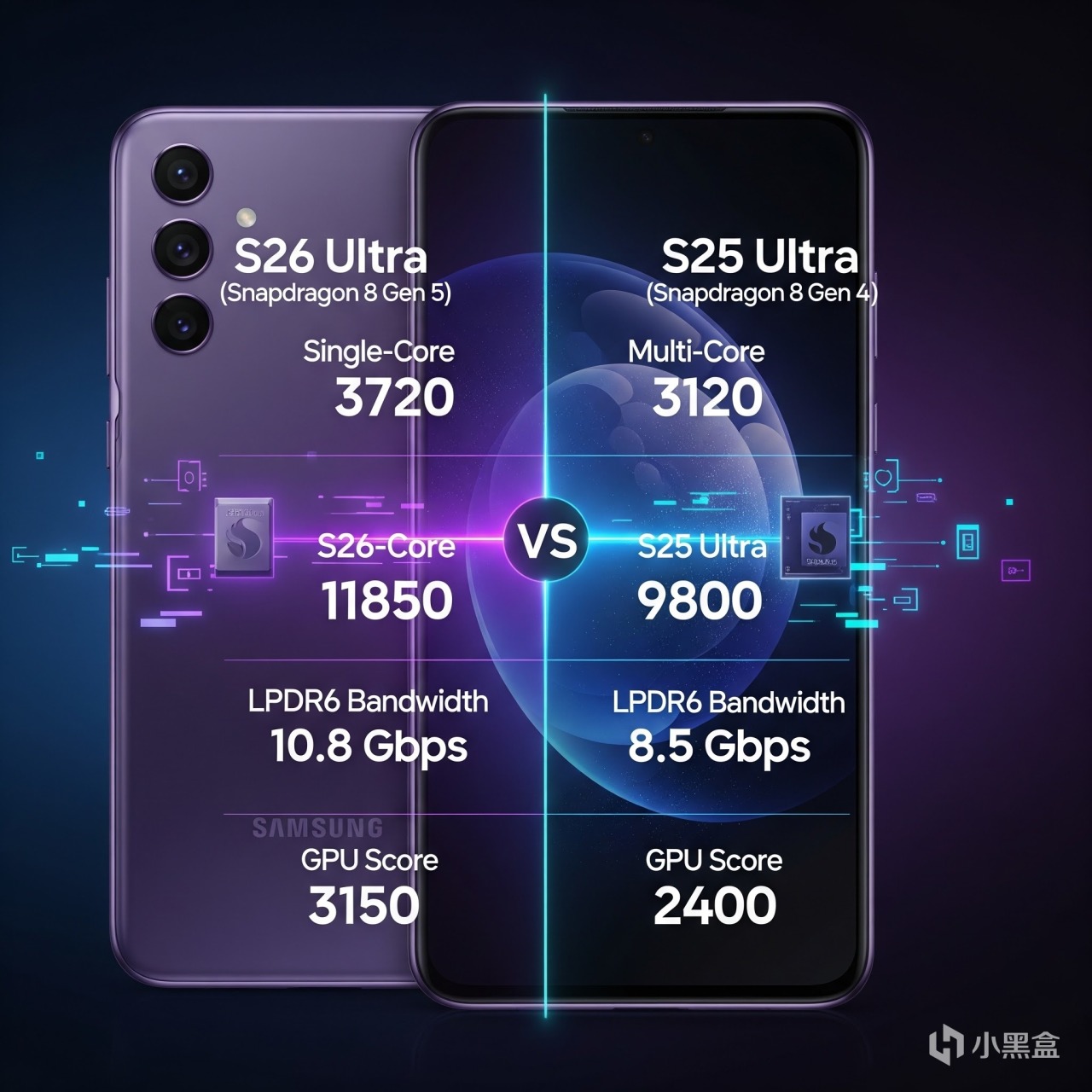 核心:S26 Ultra 搭载的骁龙 8 Elite Gen 5 在 Geekbench 7 多核跑分达到了 11850 分,相比 S25 Ultra 的 9800 分实现了 20.9% 的飞跃。