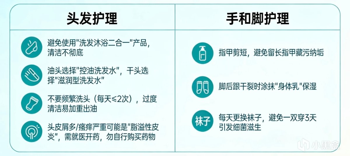 頭髮:別用那種“洗髮沐浴二合一”(之前在評論區見過八合一的),洗不乾淨。油頭買控油洗髮水,幹頭買滋潤型。別一天洗好幾次,過度清潔反而更油。頭皮屑多、癢得厲害,可能是脂溢性皮炎,去醫院開藥,別自己亂買。