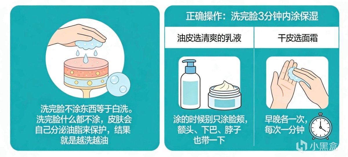 洗完臉什麼都不塗,皮膚會自己分泌油脂來保護,結果就是越洗越油。