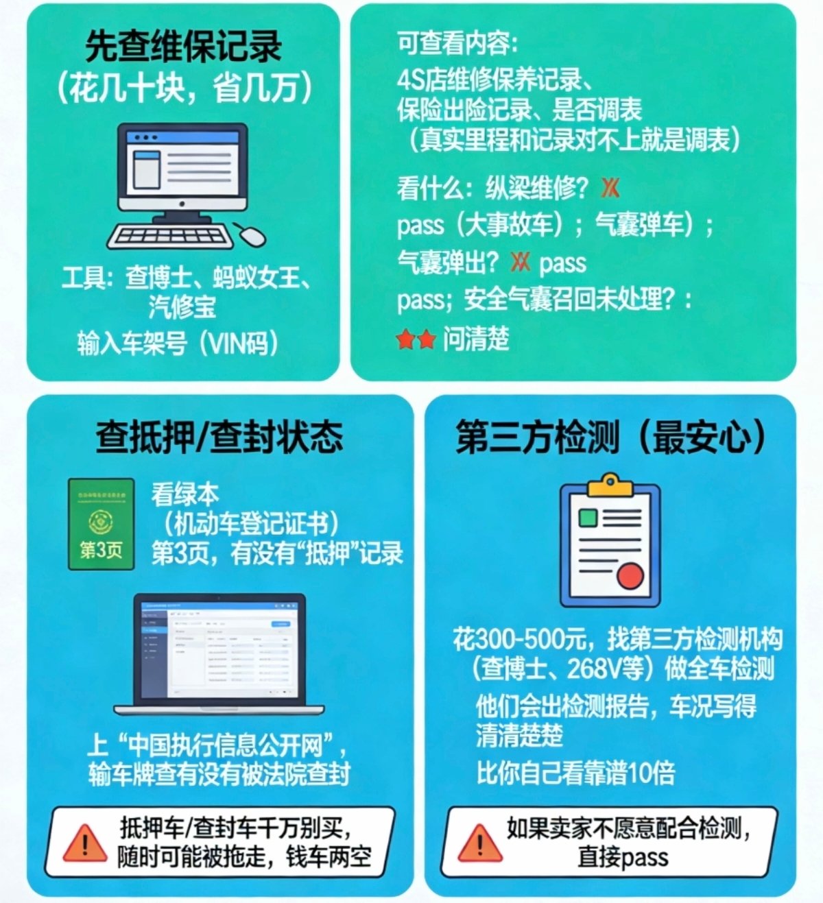 最后,花300块做第三方检测,比你自己看10遍都靠谱。找个懂车的朋友一起去,实在没有,就按这篇流程走一遍。