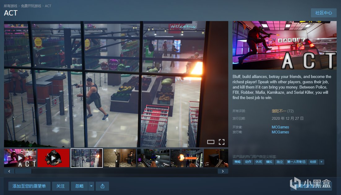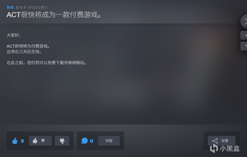 然後是《ACT》,這款遊戲是免費遊戲,但官方宣佈幾天後將轉爲付費遊戲(無小黑盒卡片)