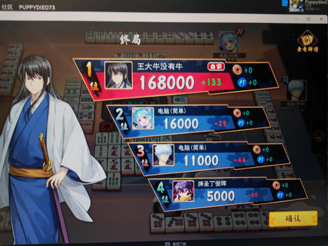 手癢的時候打很爽,兩個人玩再加兩個人機,庫庫逮着🐔哥薅,而且還能外出沒電腦的時候用手機or平板直接玩,感謝寶寶給我喂牌😋