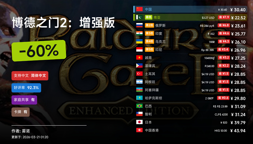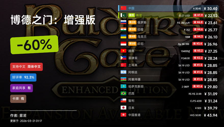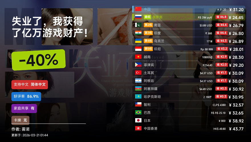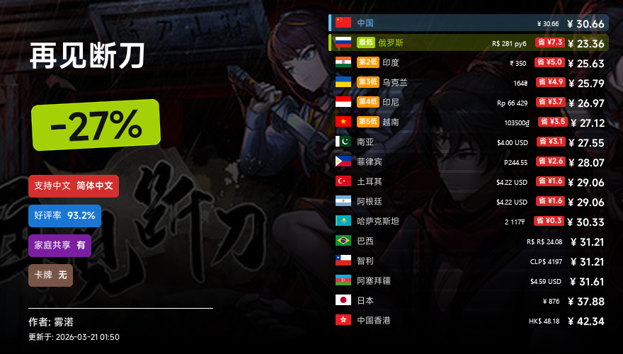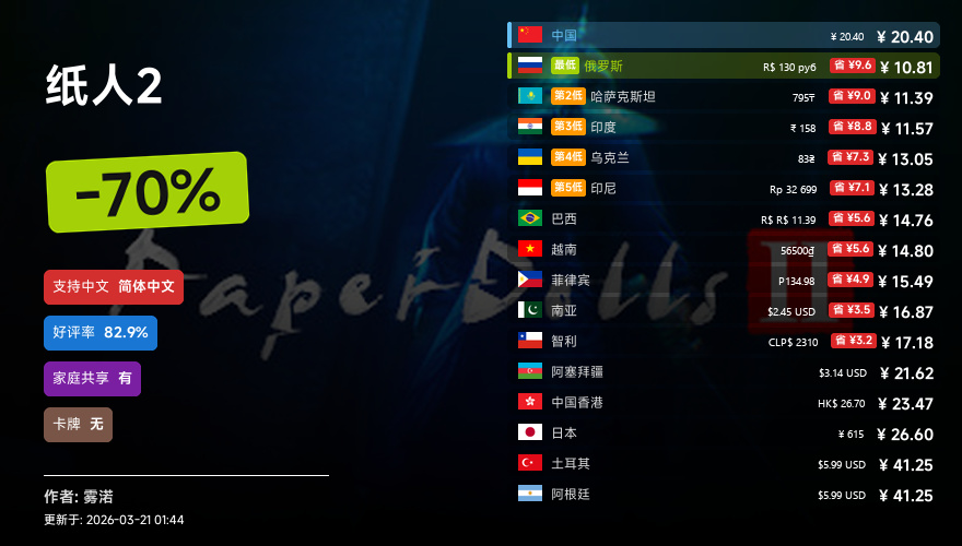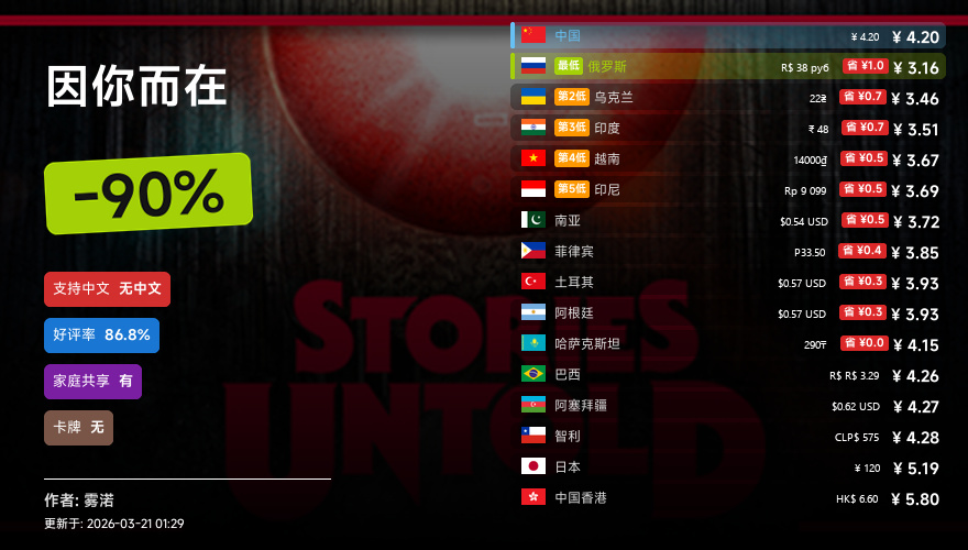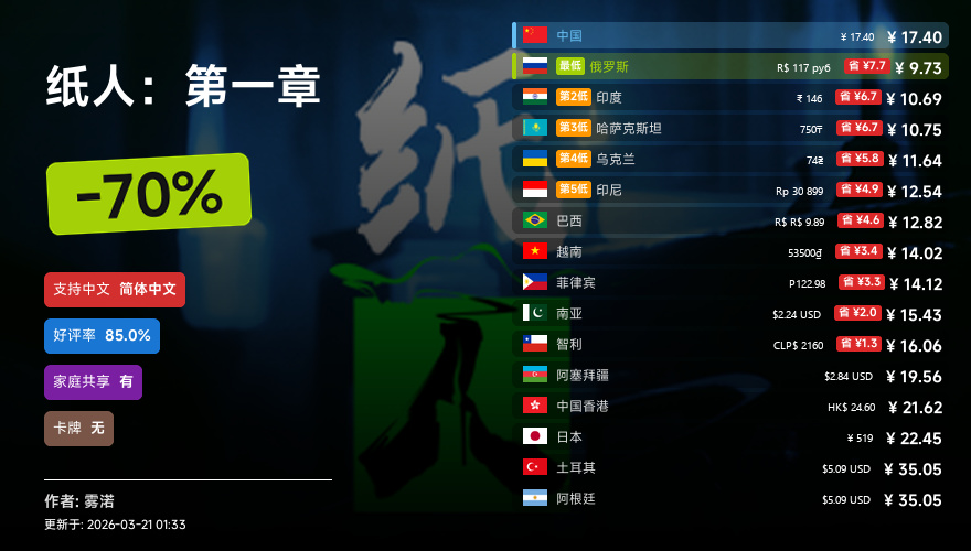 Steam 春促已開啓!我整理了春促遊戲清單,3A 大作、口碑獨立遊戲全覆蓋,普遍比國區便宜 50%-60%,最高比國區便宜 70%,一杯奶茶錢就能拿下國區百元級遊戲!
