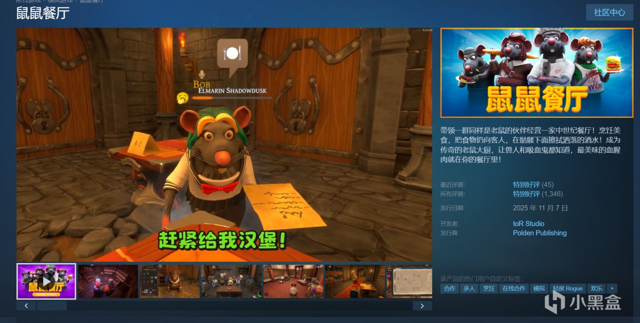 玩家带领一群老鼠伙伴,经营一家充满趣味的中世纪餐厅。日常烹饪特色美食,甚至能把食物直接扔向客人,还需在骷髅旁擦拭洒落的酒水。在搞怪的经营过程中,努力成为传奇老鼠大厨,让兽人和吸血鬼都认可你的餐厅,品尝最美味的血腥肉。