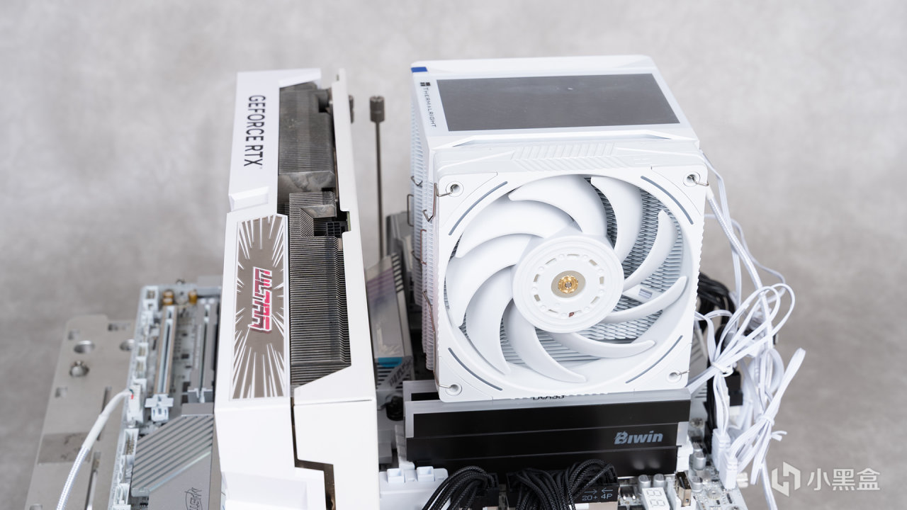 利民PA120 VISION MAX ARGB倒是不需要抬高風扇了,因爲其頂蓋屏幕本身已經計算入抬高範圍內,整體高度本身就比普通款PA120就要更高,做法相當偷巧~