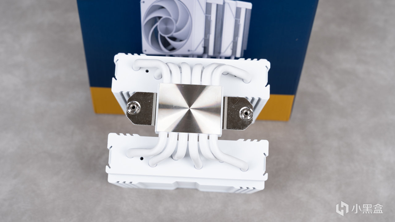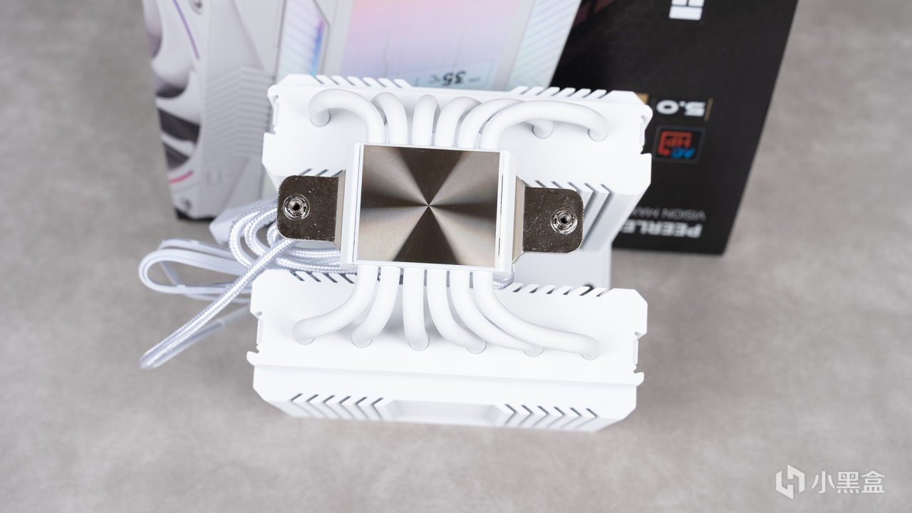 這款散熱器也採用了迴流焊+鍍鎳工藝純銅底座,並通過CNC精密車銑使之與CPU表面契合度更高,熱管規格同樣是6根6mm,還支持雙向重力優化,無論是橫向還是縱向都能發揮最佳熱傳導效率。