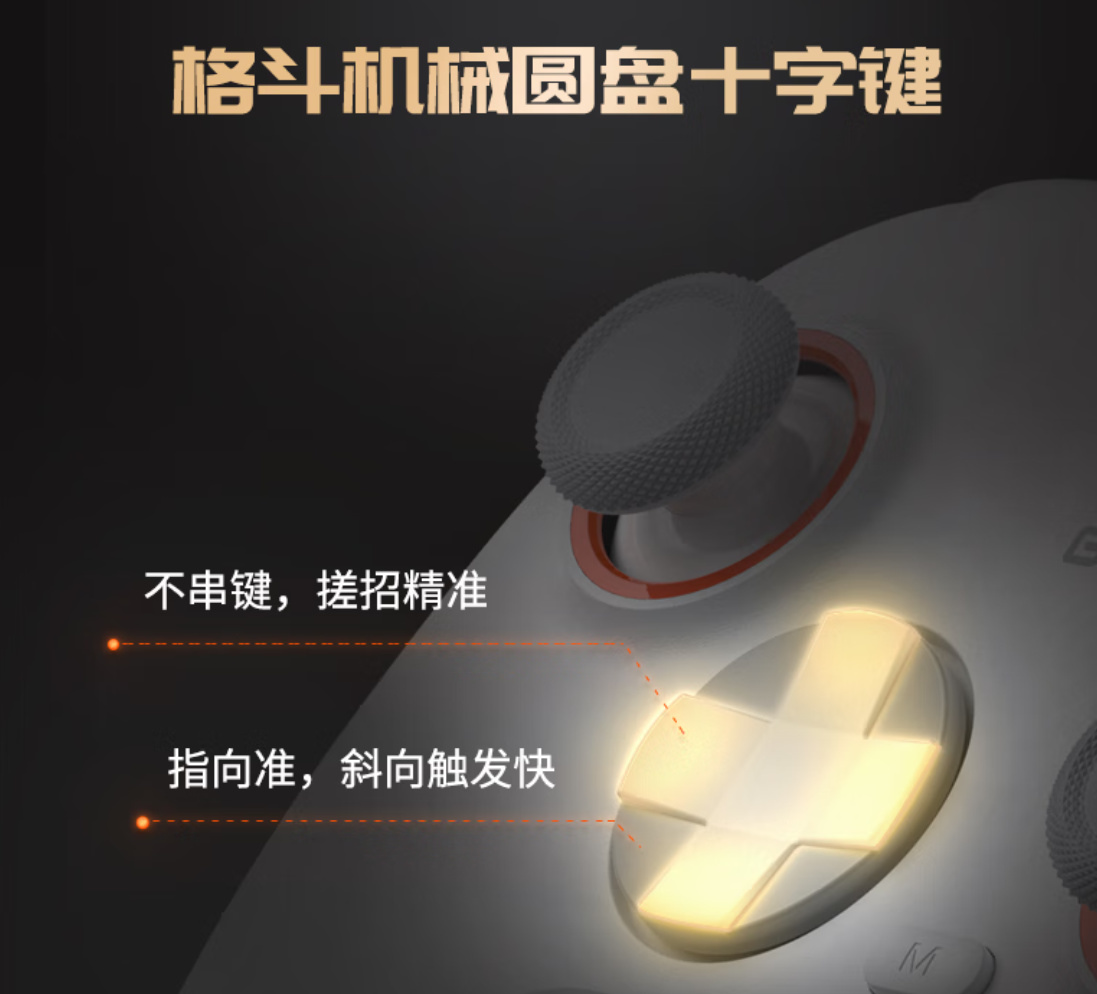 传统十字键升级为悬浮式圆盘全向十字键,更方便操作。而且不是合适真正意义上的“搓”。