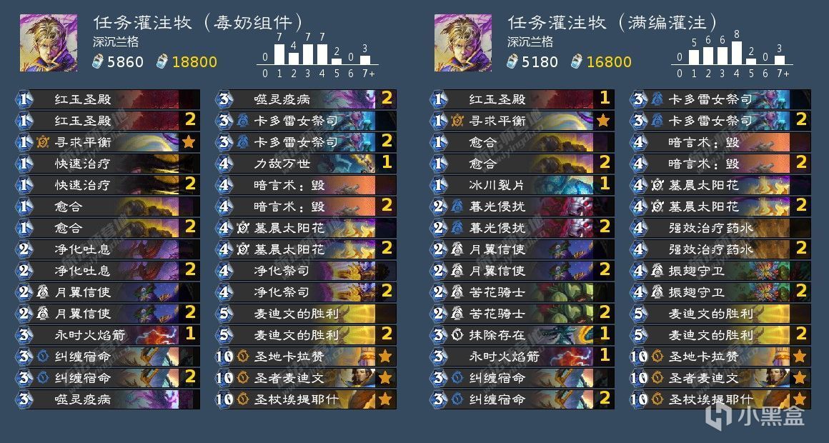 作爲標準現在唯一能玩的牧師構築,奇聞基本都是必帶的,區別就是第一套帶了毒奶這幾張組件有斬殺手段,第二套基本都是靠解完對面守贏。