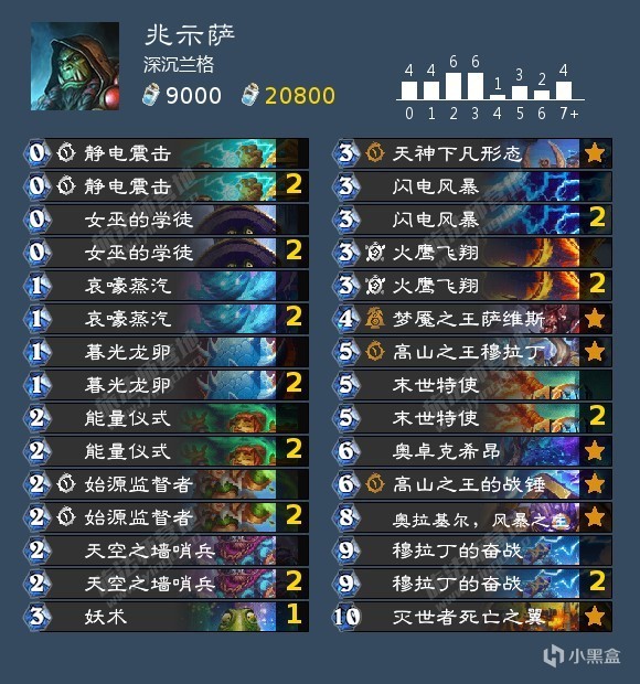 最新版的兆示薩,滿編閃電風暴和女巫的學徒,節奏比老版本更好。妖術帶一張即可,用來對付蛋或者對面的大哥。