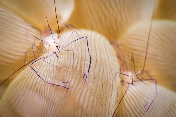 在珊瑚中,它们通常扮演着“清洁工”的角色:挥动触角吸引“顾客”,然后开始清洁其他生物的口腔、鳃等部位。